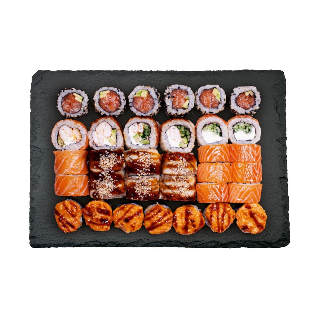 Филадельфия лайт, канада с креветками, ролл 5 звезд, ролл по-русски, запеченный ролл с угрем
