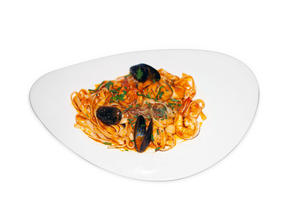 Креветка тигровая, мидии, кальмар, удон, соус биск, смесь специй для вок, кинза, подсолнечное масло