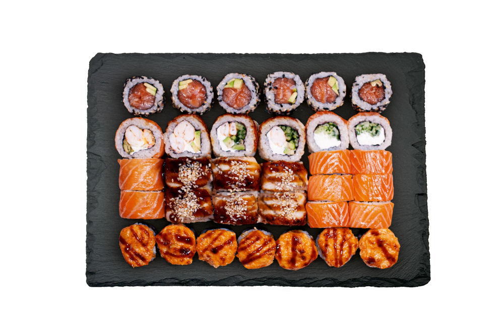 Филадельфия лайт, канада с креветками, ролл 5 звезд, ролл по-русски, запеченный ролл с угрем